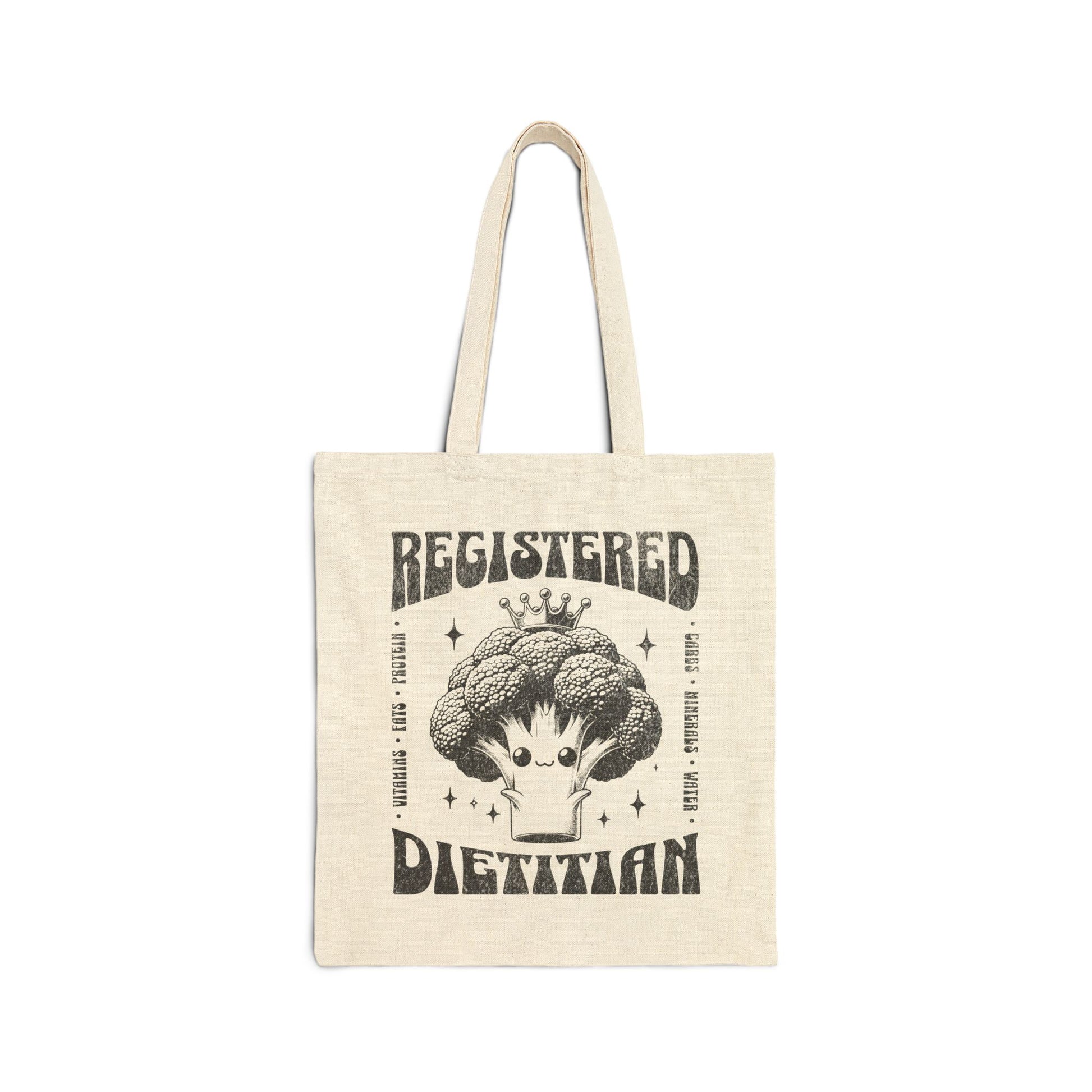 A tote bag made perfectly for Registered Dietitians. The retro RDN design is printed on a 100% cotton canvas bag. This design has an intentional trendy distressed look. This dietitian bag works great for groceries, books, and other everyday items.